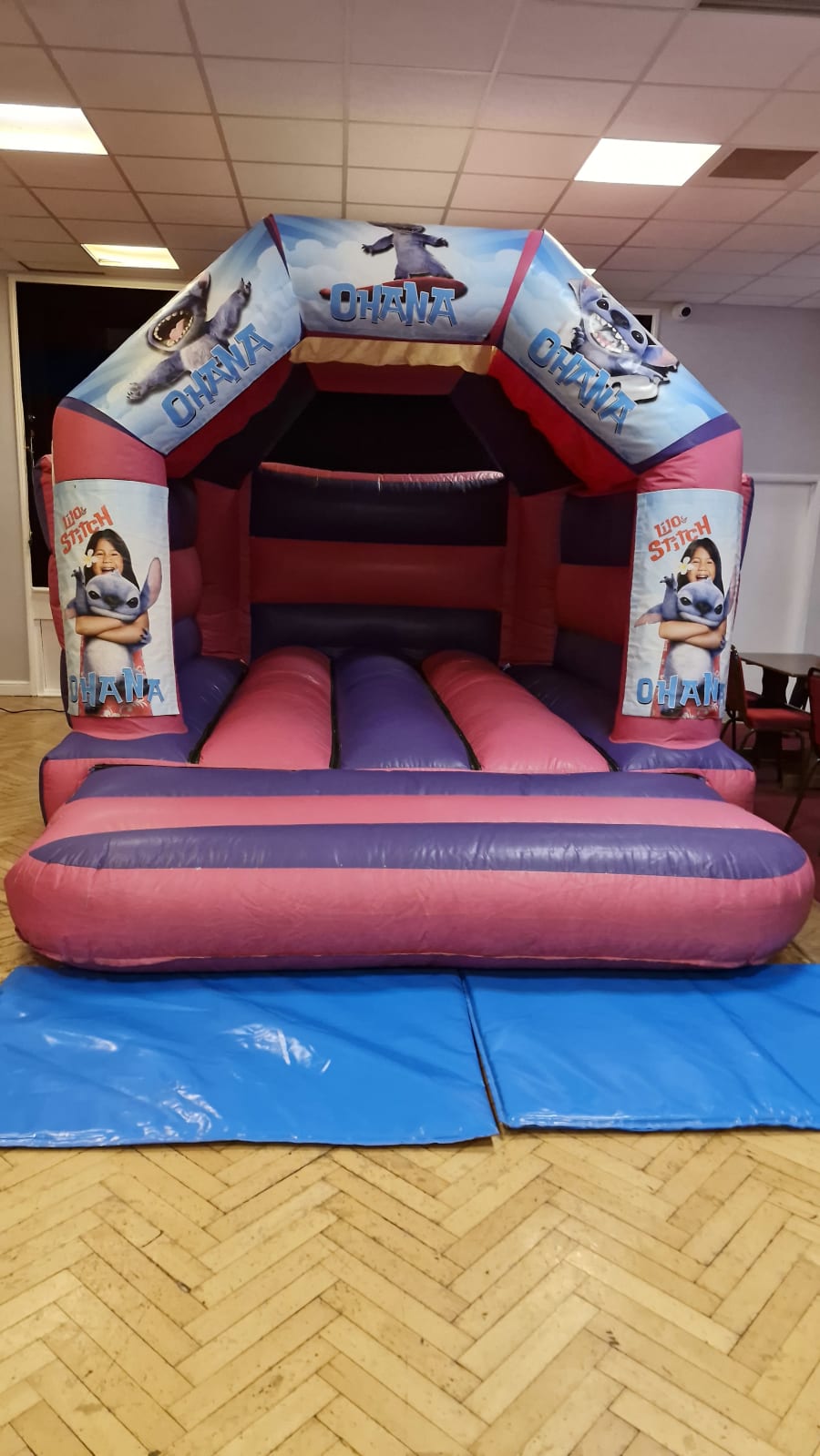 Book Lilo & Stitch pink bouncy castle hire in Newport, Cwmbran & South Wales for birthdays, school events & family fun days. Fun Disney-themed inflatables are available across Newport and nearby towns.
