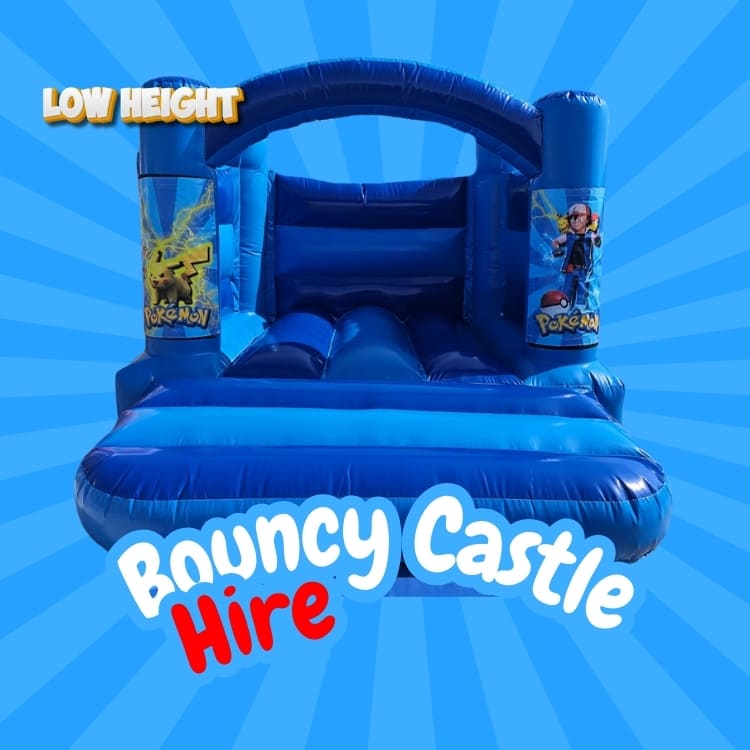 Pokemon Low Height Blue Bouncy Castle Hire | Parties, Schools & Community Events