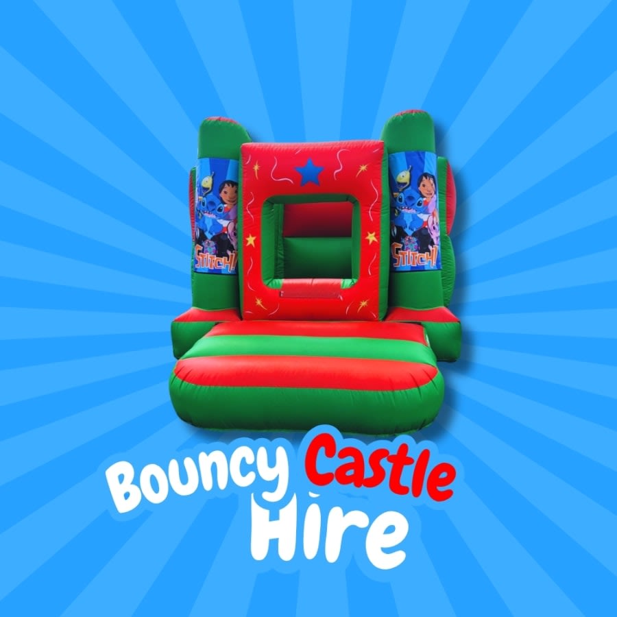 Hire the Small Stitch Toddler Bouncy Castle for toddler parties in Chepstow and surrounding areas. Safe, colourful, and perfect for the youngest guests.