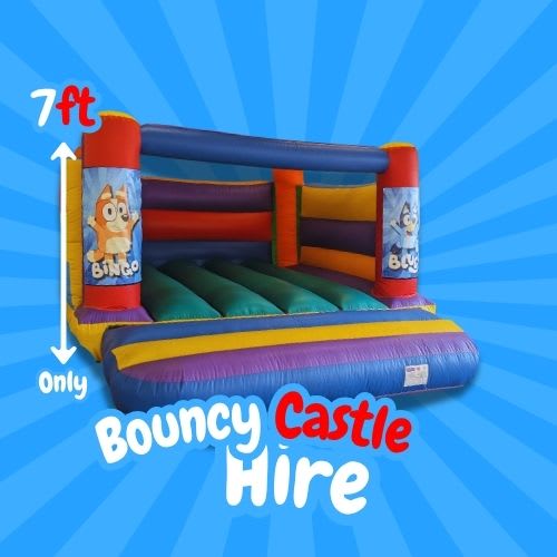 Hire the Bluey Low Height Bouncy Castle for kids’ parties in Newport and surrounding areas. Safe, colourful, and perfect for younger children’s fun.